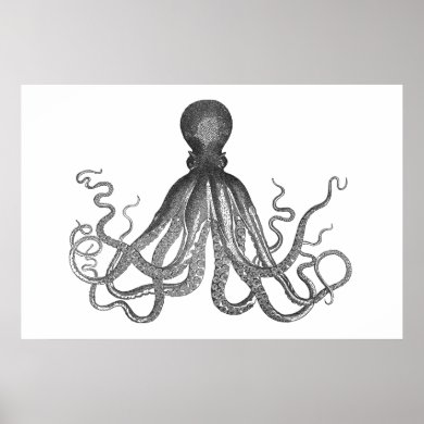 Kraken - Black Giant Octopus / Cthulu Print