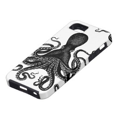 This wonderful design was based on the drawings of the Victorian exploration ship, the HMS Challenger. The tentacles and suction cups make this a wonderful choice. Here on zazzle you can easily customize the design by adding someone's initials near the bottom. If you are a steampunk, cthulu fan, or just love these clever Octopi - this is the Tough Case for you!